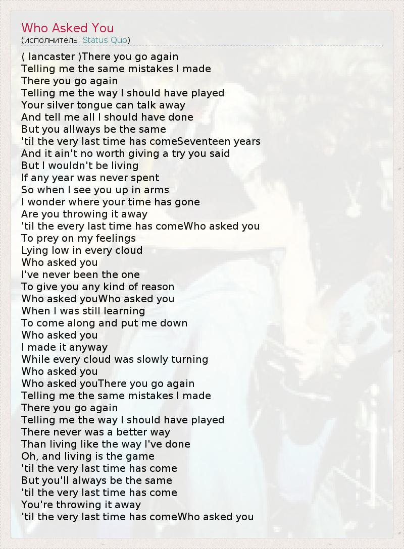 А как ты думаешь, о чем песня "Who Asked You" ?