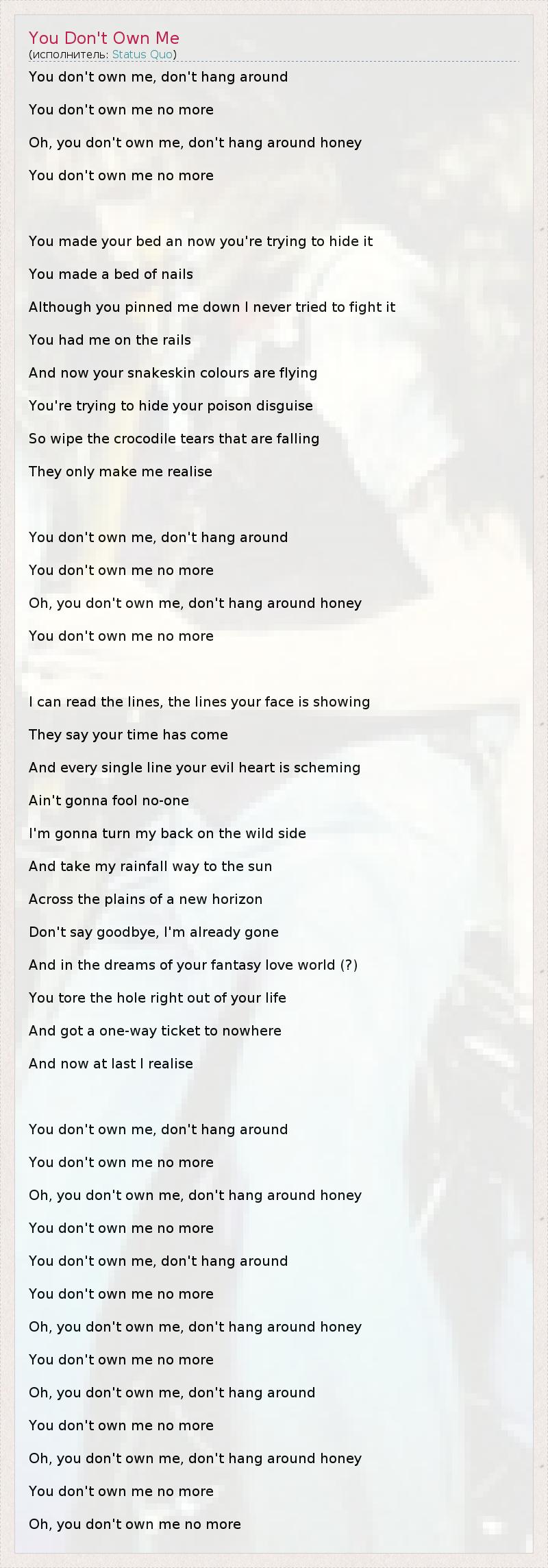 А как ты думаешь, о чем песня "You Don't Own Me" ?