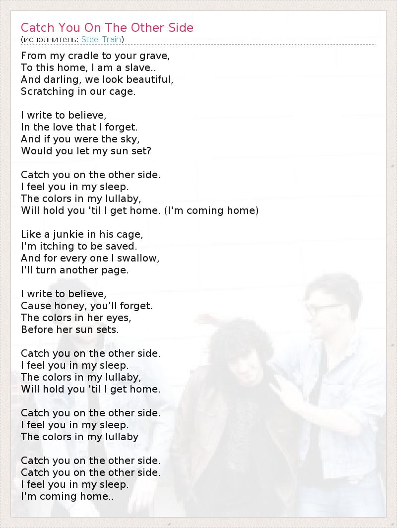 А как ты думаешь, о чем песня "Catch You On The Other Side" ?
