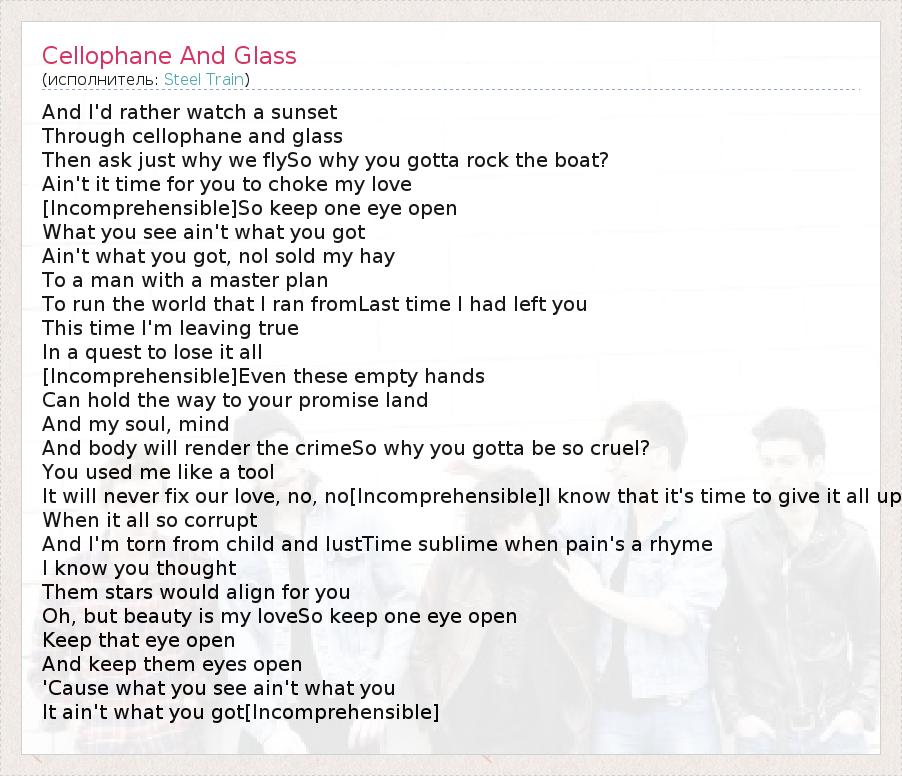 А как ты думаешь, о чем песня "Cellophane And Glass" ?