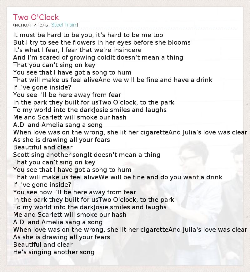 А как ты думаешь, о чем песня "Two O'Clock" ?