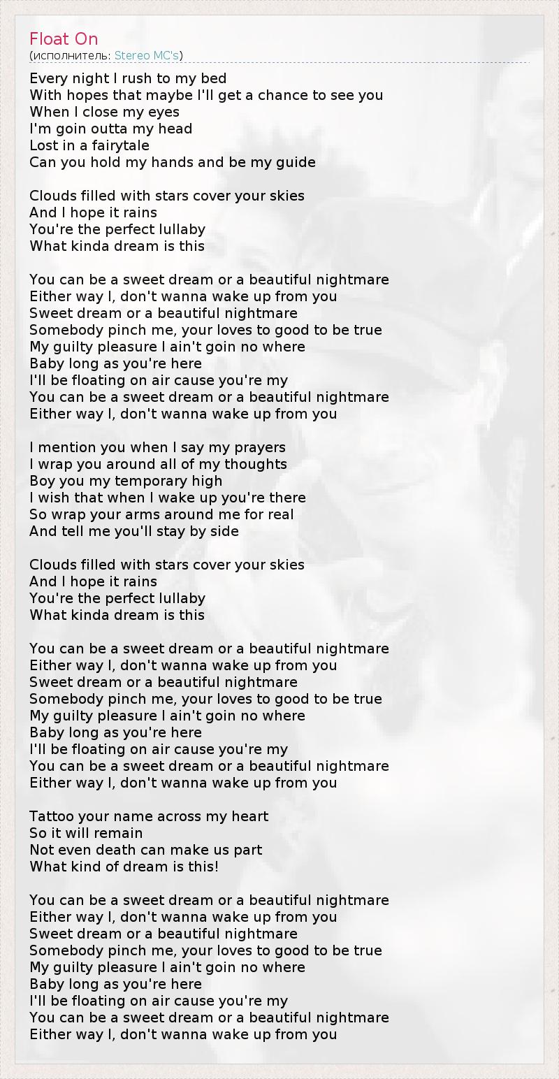 Я мечтаю, что, когда я проснусь, ты будешь здесь.