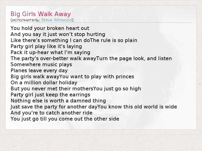 А как ты думаешь, о чем песня "Big Girls Walk Away" ?