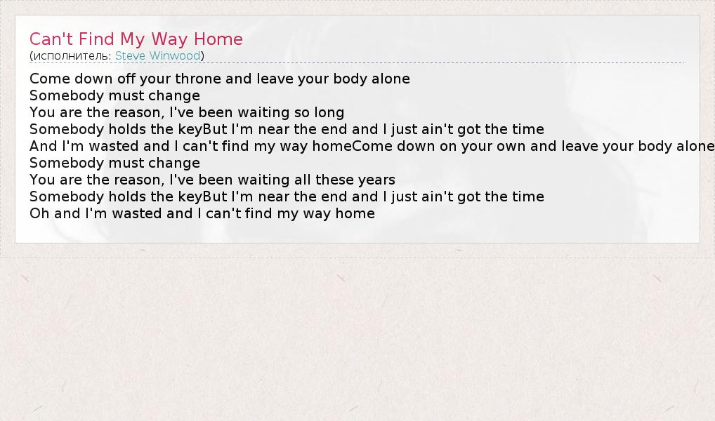 А как ты думаешь, о чем песня "Can't Find My Way Home" ?