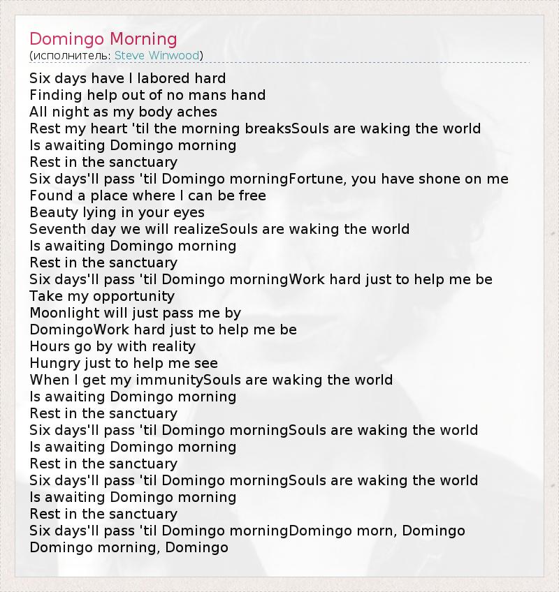 А как ты думаешь, о чем песня "Domingo Morning" ?