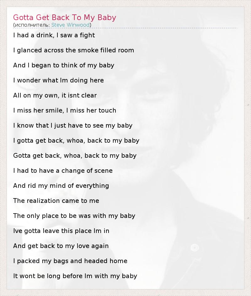ГлавнаяИсполнителиSteve WinwoodGotta Get Back To My Baby