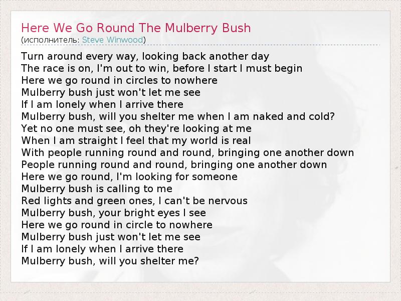 А как ты думаешь, о чем песня "Here We Go Round The Mulberry Bush" ?