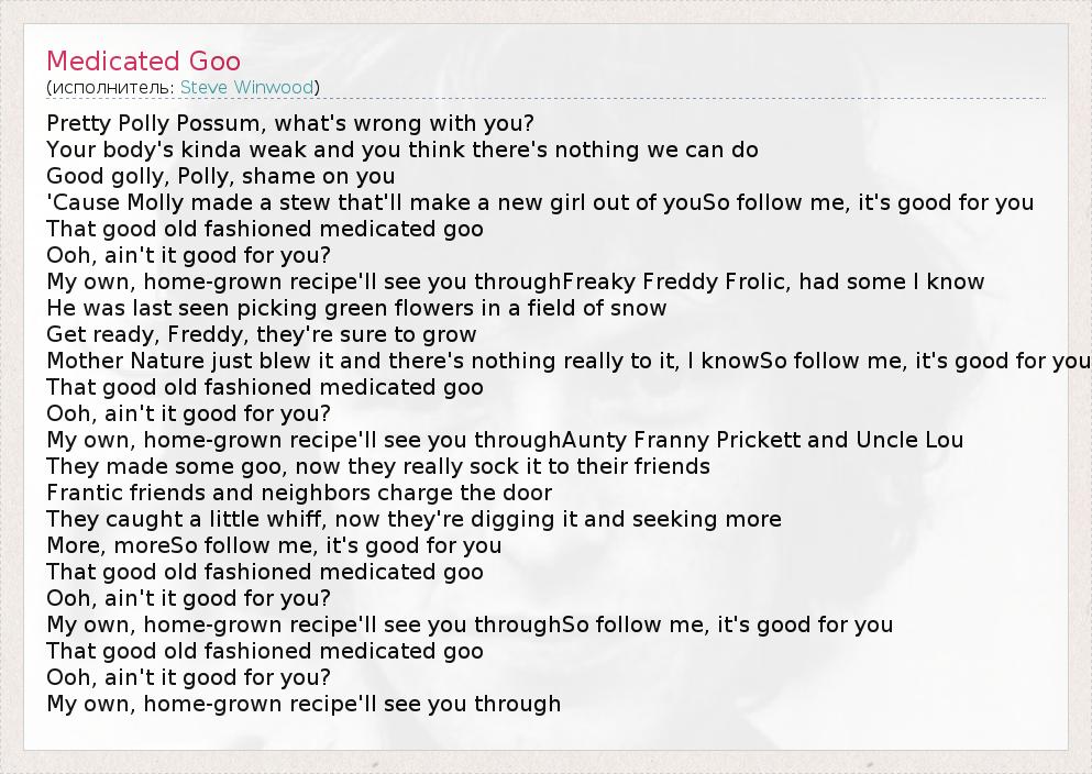 А как ты думаешь, о чем песня "Medicated Goo" ?