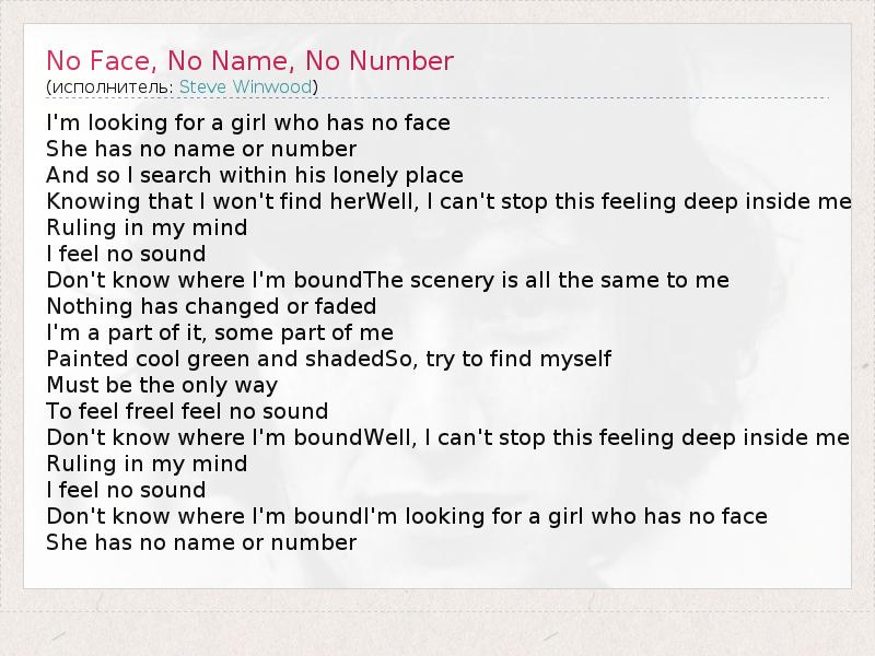 А как ты думаешь, о чем песня "No Face, No Name, No Number" ?