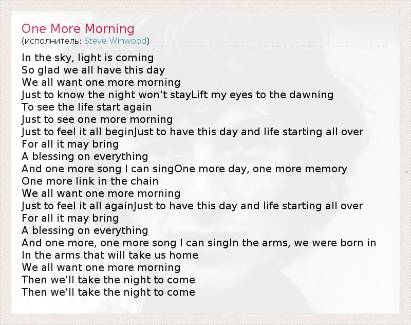 Это интересно:Стив Уинвуд (Steve Winwood, род. 12 мая 1948 года) — английский рок-музыкант, который сам пишет и исполняет песни и играет на многих инструментах. Помимо вполне успешной сольной карьеры, в молодости участвовал в рок-группах Spencer Davis Group, Traffic, Go и Blind Faith.Родом из Бирмингема, Уинвуд с детства аккомпанировал заезжим звездам ритм-энд-блюза — Би Би Кингу, Мадди Уотерсу, Джону Ли Хукеру, Бо Дидли, Чаку... продолжение