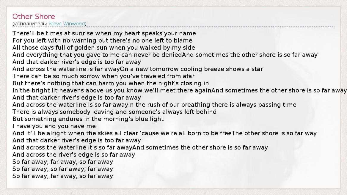 In the bright lit heavens above us you know we'll meet there againAnd sometimes the other shore is so far away
