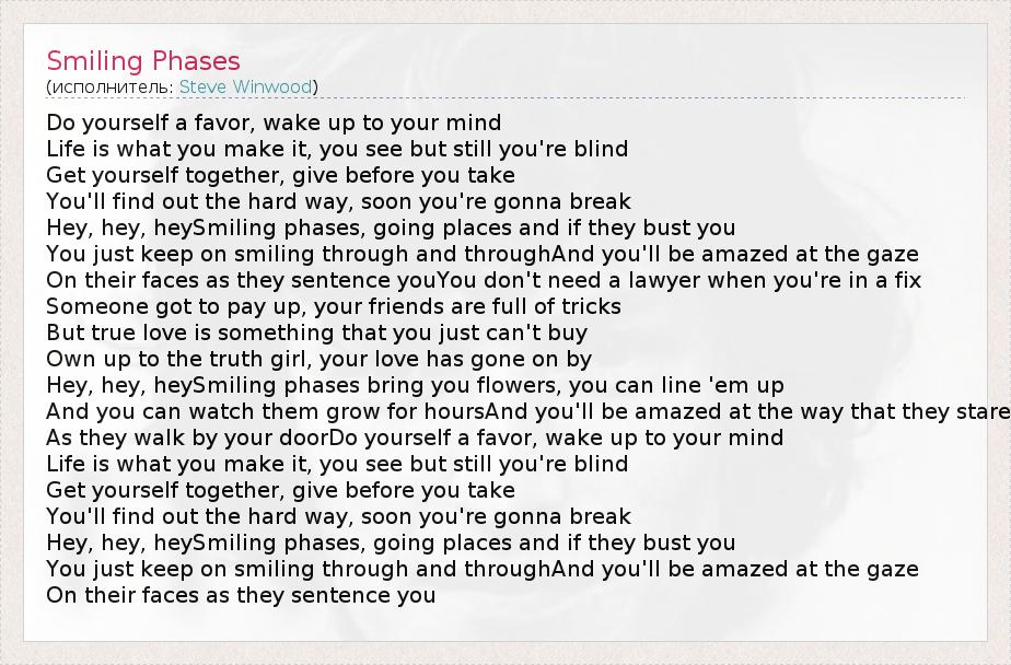 А как ты думаешь, о чем песня "Smiling Phases" ?