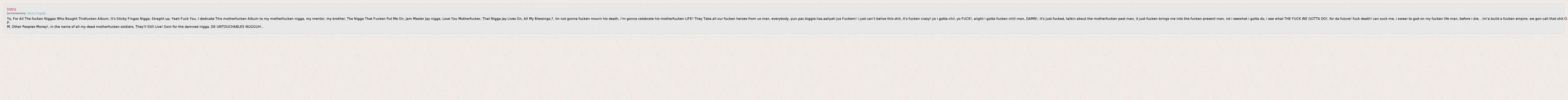 Yo, For All The fucken Niggaz Who Bought Thisfucken Album, it's Sticky Fingaz Nigga, Straght up, Yeah Fuck You, I dedicate This motherfucken Album to my motherfucken nigga, my mentor, my brother, The Nigga That Fucken Put Me On, Jam Master Jay nigga, Love You Motherfucker, That Nigga Jay Lives On, All My Blessings,?, Im not gonna fucken mourn his death, i'm gonna celebrate his motherfucken LIFE! They Take all our fucken heroes from us man, everybody, pun.pac.biggie.lisa.aaliyah Jus Fuckem! i just can't belive this shit, it's fucken crazy! yo i gotta chil, yo FUCK!, aiight i gotta fucken chill man, DAMN!, it's just fucked, talkin about the motherfucken past man, it just fucken brings me into the fucken present man, nd i seewhat i gotta do, i see what THE FUCK WE GOTTA DO!, for da future! fuck death! can suck me, i swear to god on my fucken life man, before i die... Im'a build a fucken empire, we gon call that shit O.