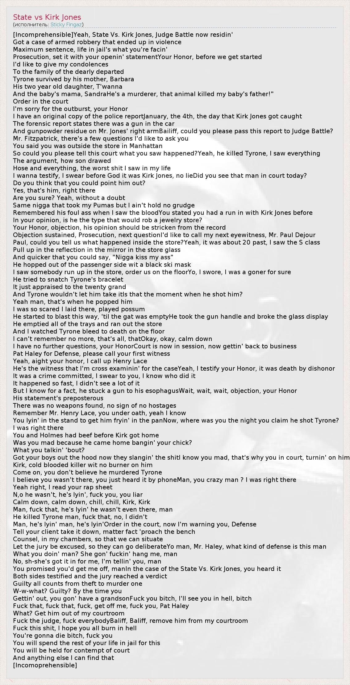 А как ты думаешь, о чем песня "State vs Kirk Jones" ?