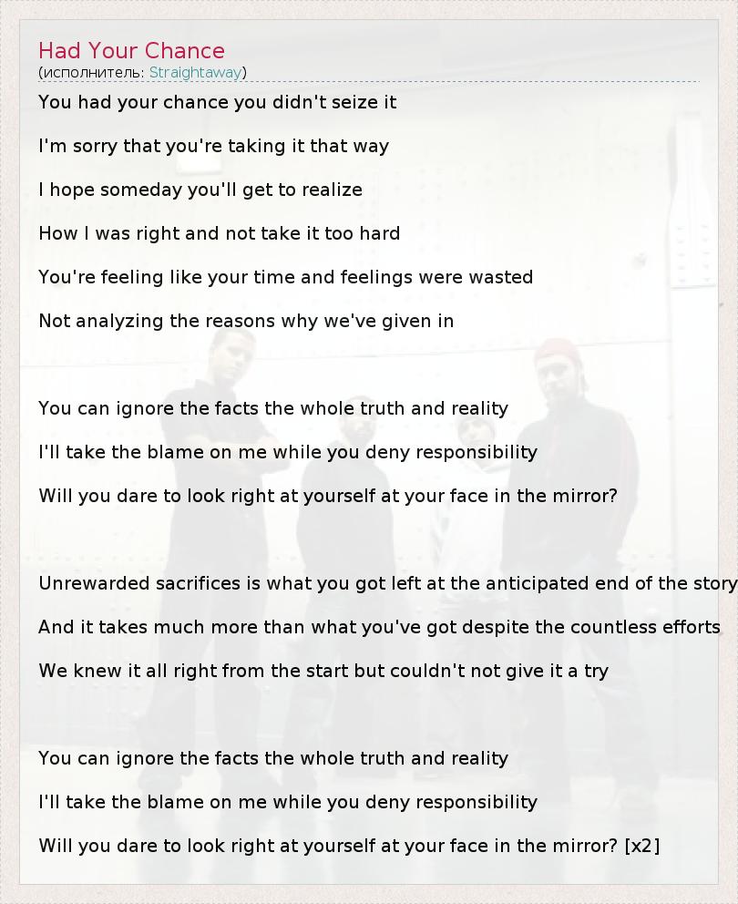 А как ты думаешь, о чем песня "Had Your Chance" ?