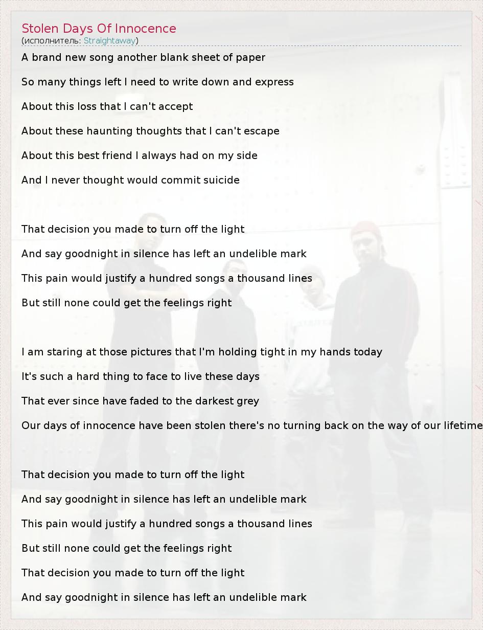 А как ты думаешь, о чем песня "Stolen Days Of Innocence" ?