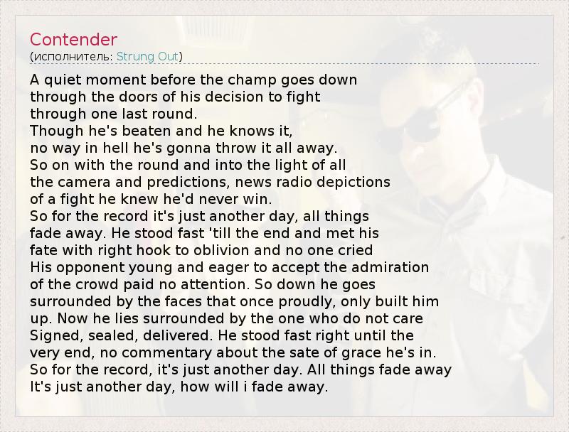 А как ты думаешь, о чем песня "Contender" ?