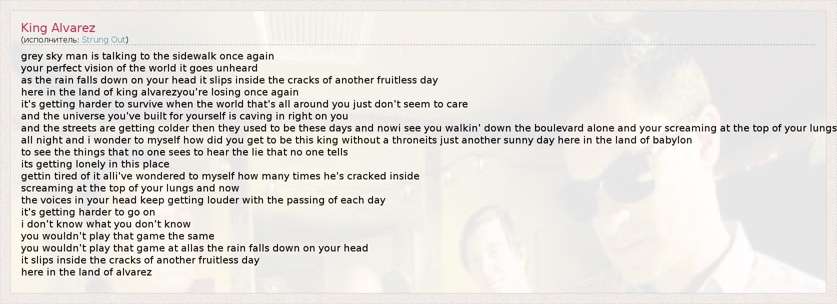А как ты думаешь, о чем песня "King Alvarez" ?