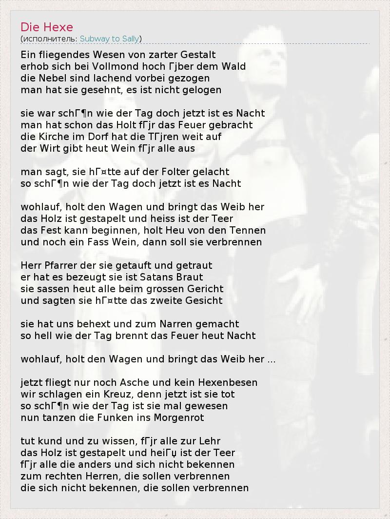 А как ты думаешь, о чем песня "Die Hexe" ?