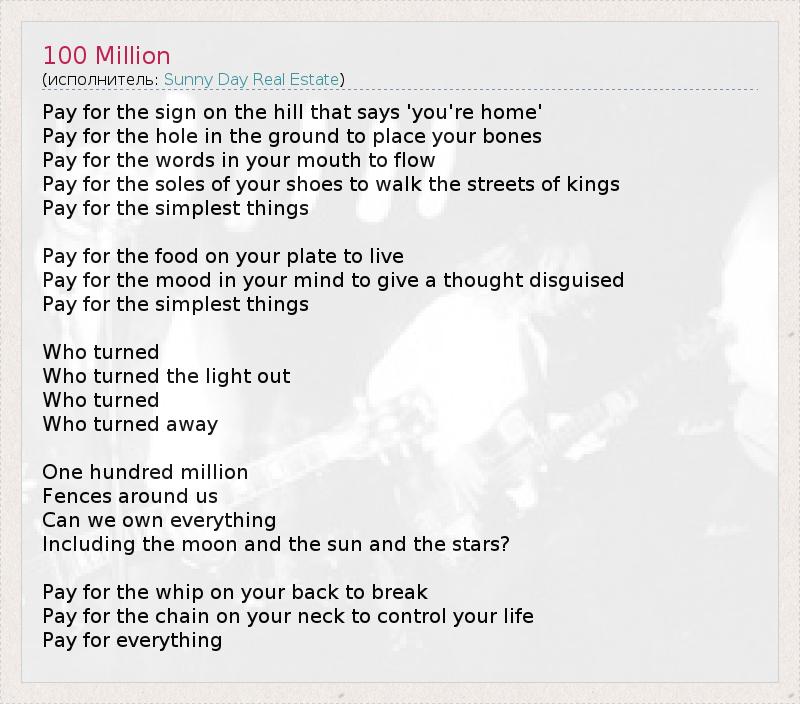 А как ты думаешь, о чем песня "100 Million" ?
