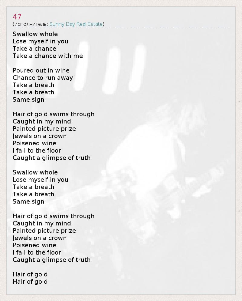 Это интересно:Sunny Day Real Estate (или SDRE) (с англ. Собственность солнечного дня) — американская альтернативная рок-группа из города Сиэттл, штат Вашингтон. Группа образовалась в 1992 году под первоначальным названием «Empty Set» и включала в себя Дэна Хэрнера (гитара, вокал), Нэйта Мэндела (бас) и Уильяма Голдсмита (барабаны).Ребята записали демо под этим названием, но тут вдруг обнаружилось,... продолжение