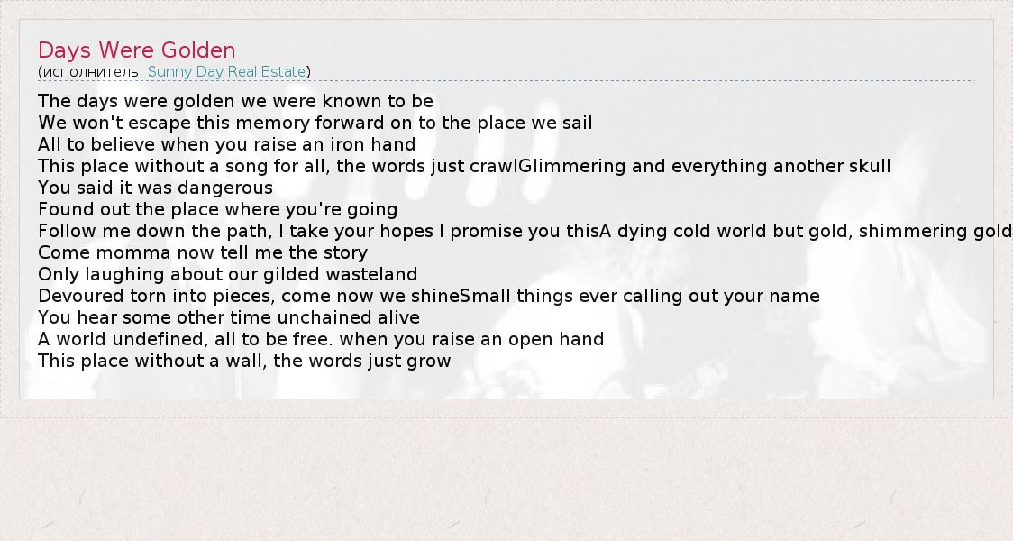А как ты думаешь, о чем песня "Days Were Golden" ?
