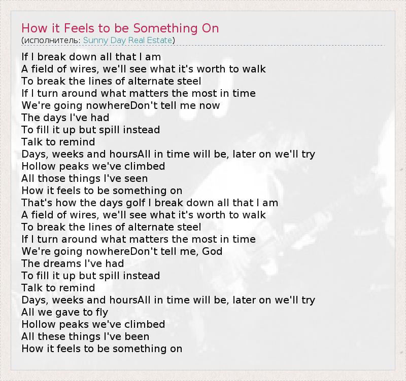 А как ты думаешь, о чем песня "How it Feels to be Something On" ?