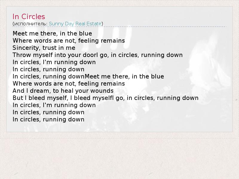 But I bleed myself, I bleed myselfI go, in circles, running down