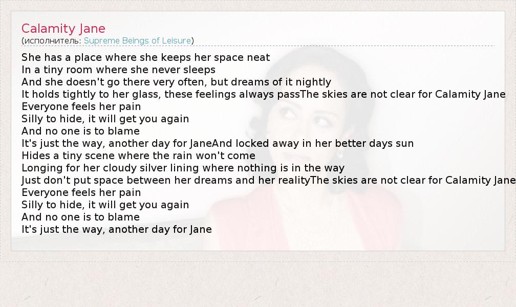А как ты думаешь, о чем песня "Calamity Jane" ?