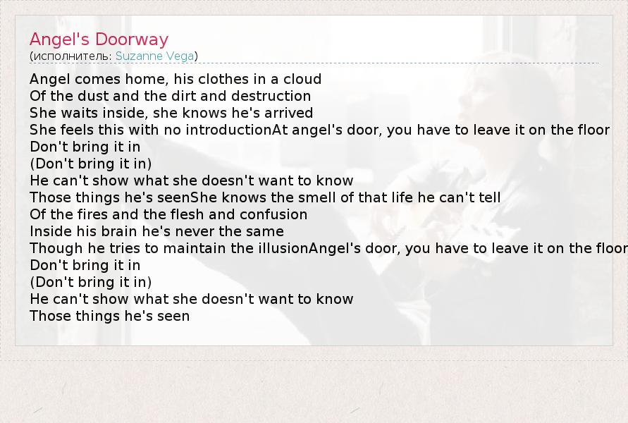 А как ты думаешь, о чем песня "Angel's Doorway" ?