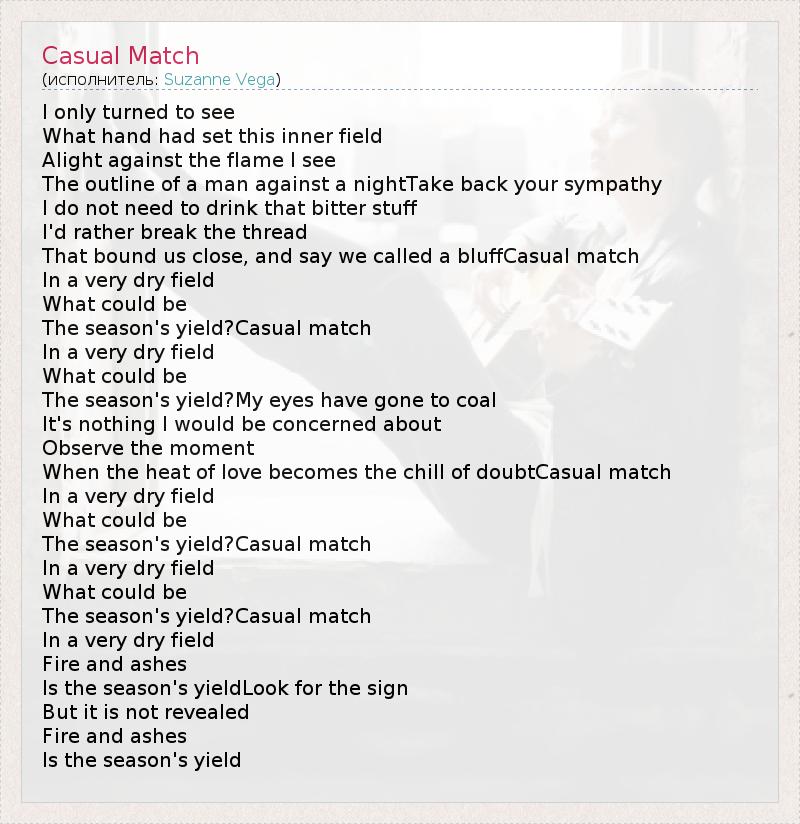 Это интересно:Сюзанна Надин Вега (англ. Suzanne Nadine Vega, род. 11 июля 1959 года в Санта-Монике, штат Калифорния) - американская инди-вокалистка, автор песен и музыки на базе фольклора, гитаристка, самая яркая тема — Tom's Diner.Однажды маленькая Сьюзанн и соседский парень Марк сидели на скамейке во дворе. Им обоим было по 4 года. Вдруг девочка нечаянно уронила свой взгляд на ухажера и нежным голоском... продолжение