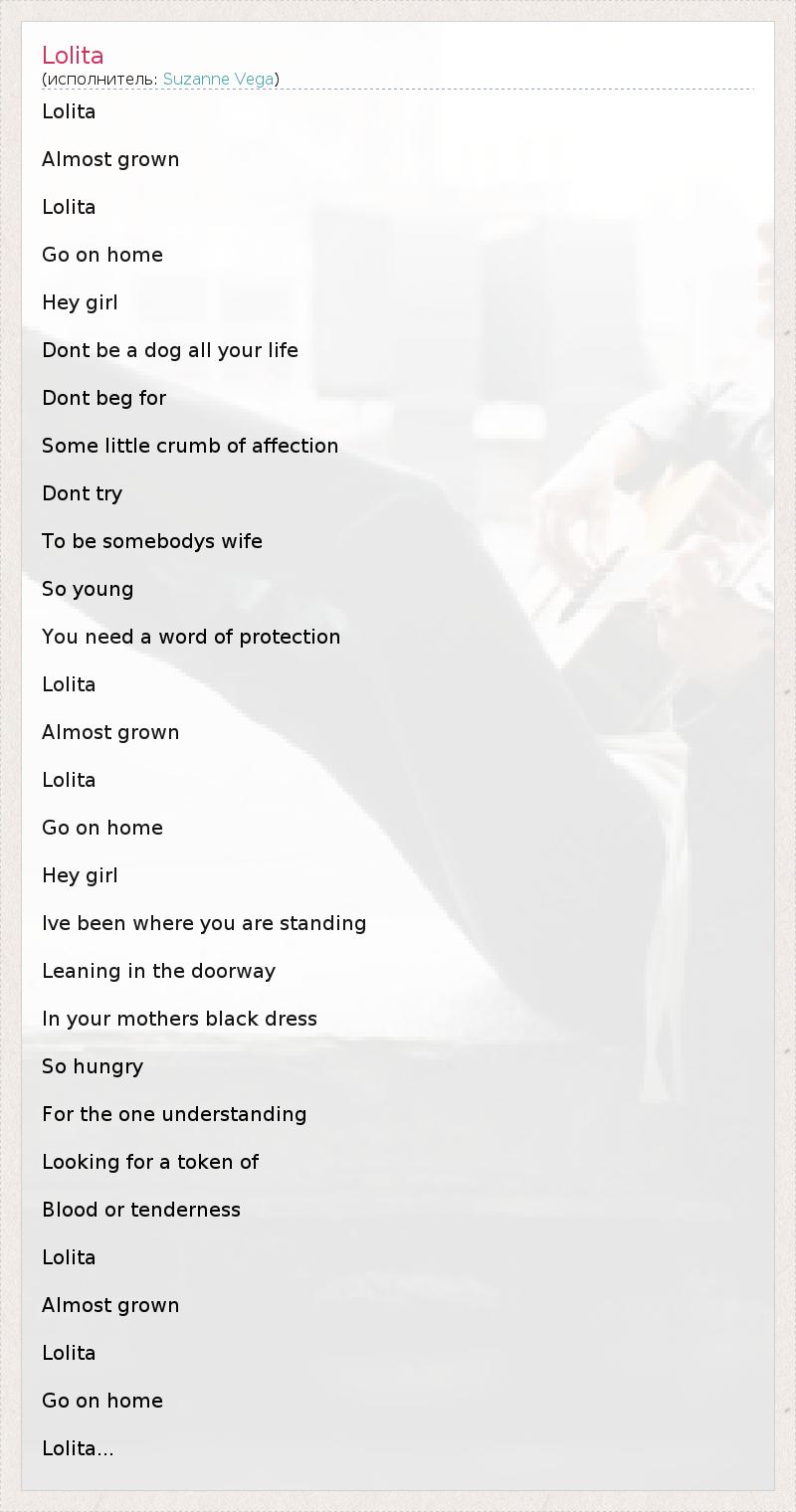 Это интересно:Сюзанна Надин Вега (англ. Suzanne Nadine Vega, род. 11 июля 1959 года в Санта-Монике, штат Калифорния) - американская инди-вокалистка, автор песен и музыки на базе фольклора, гитаристка, самая яркая тема — Tom's Diner.Однажды маленькая Сьюзанн и соседский парень Марк сидели на скамейке во дворе. Им обоим было по 4 года. Вдруг девочка нечаянно уронила свой взгляд на ухажера и нежным голоском... продолжение