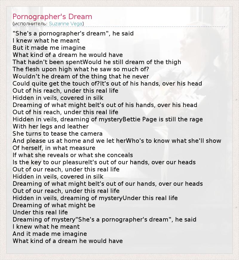 А как ты думаешь, о чем песня "Pornographer's Dream" ?