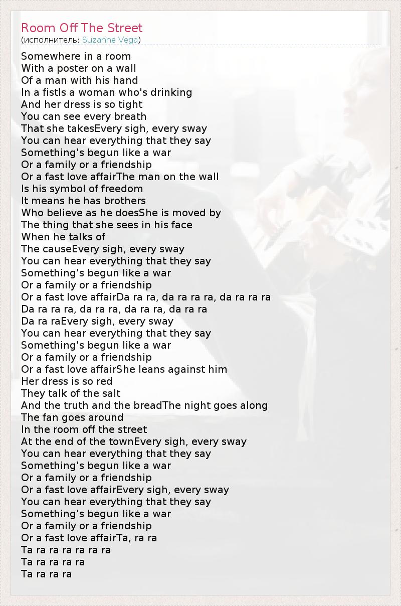 А как ты думаешь, о чем песня "Room Off The Street" ?