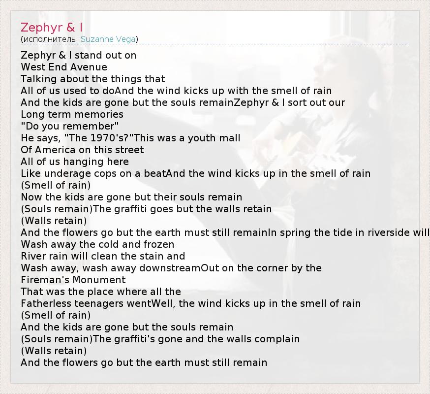 А как ты думаешь, о чем песня "Zephyr & I" ?