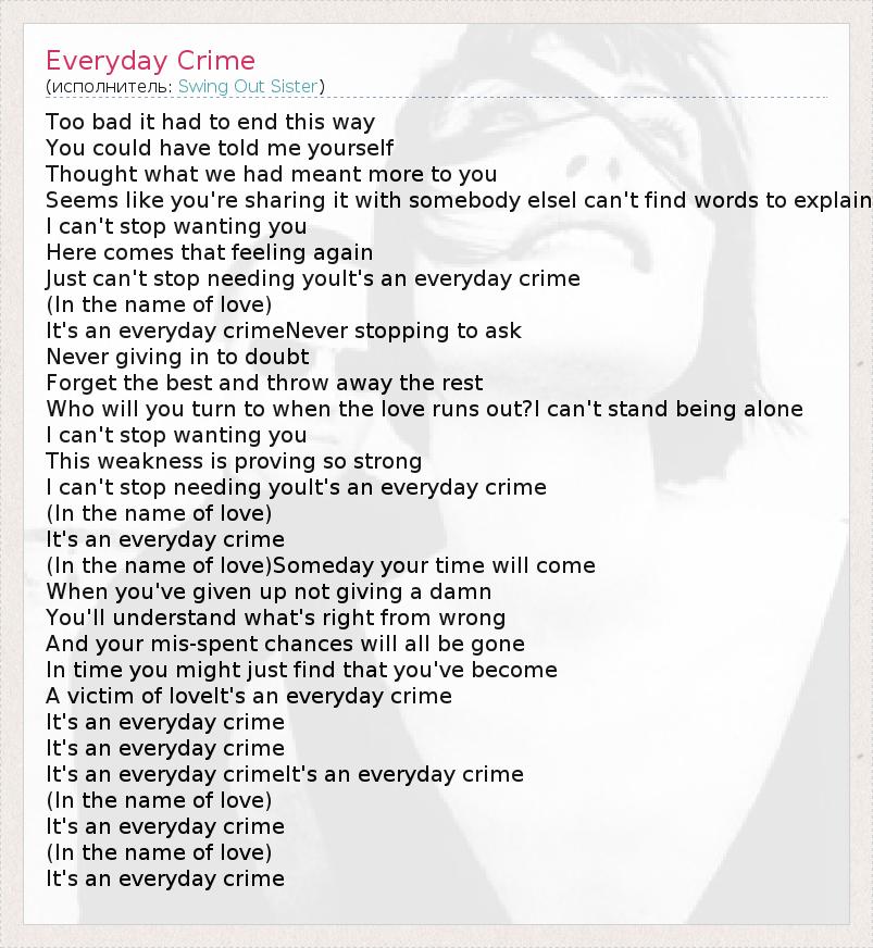 А как ты думаешь, о чем песня "Everyday Crime" ?