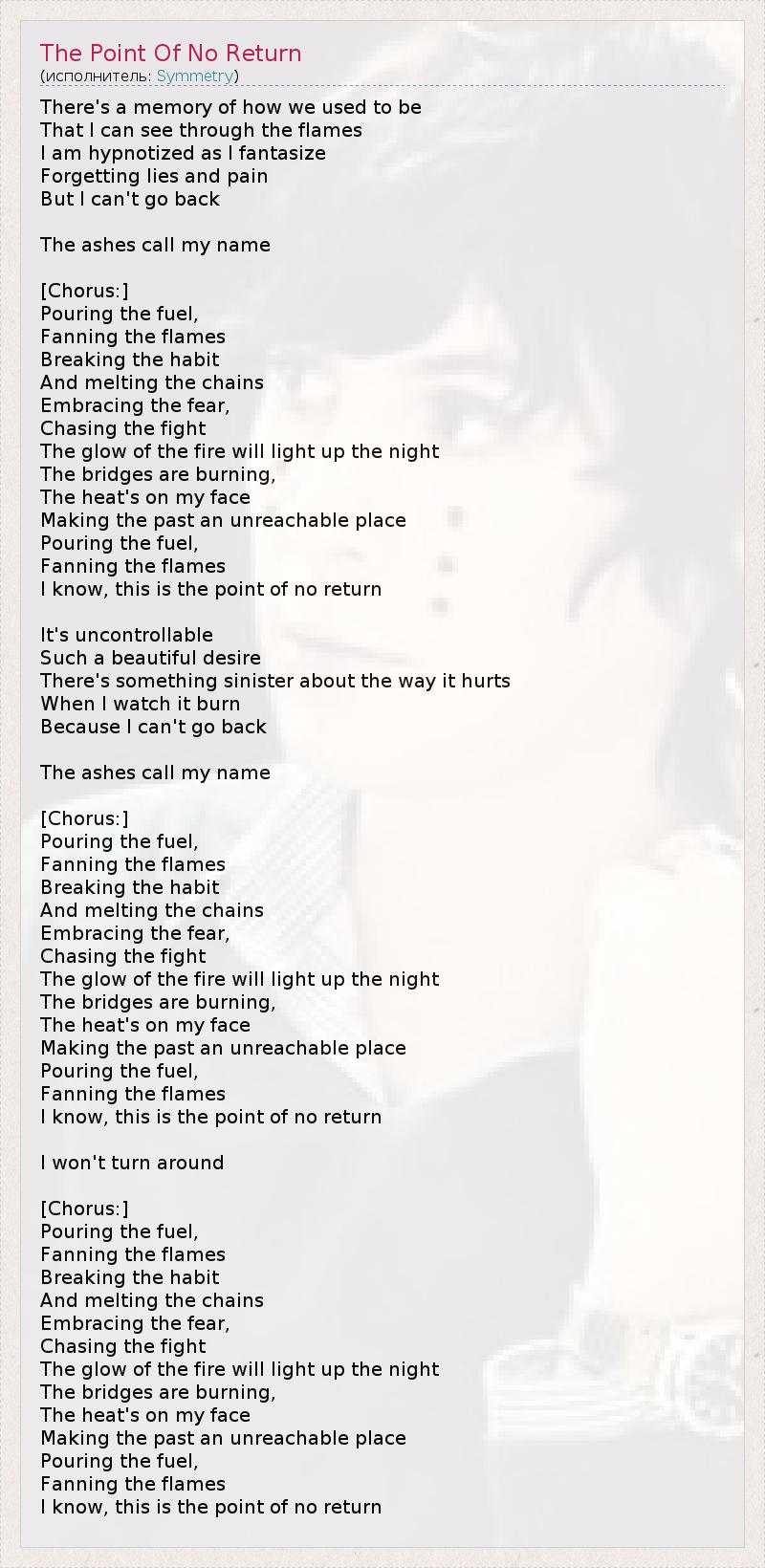 А как ты думаешь, о чем песня "The Point Of No Return" ?