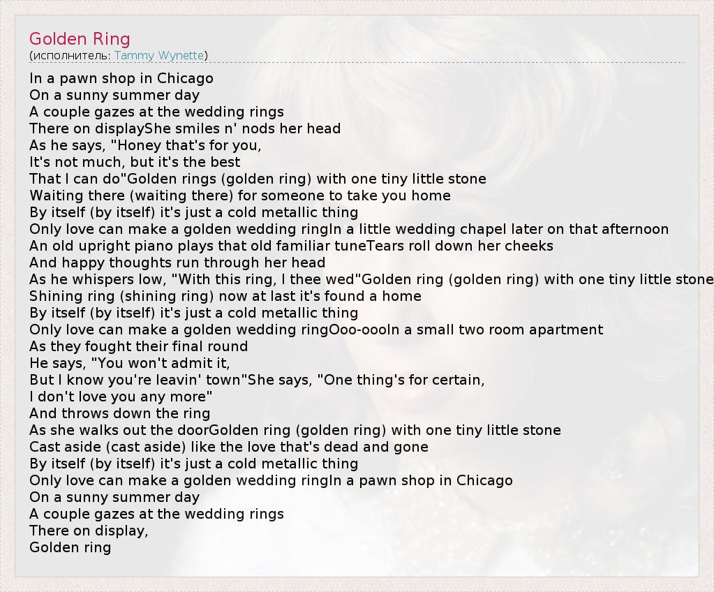 As he whispers low, "With this ring, I thee wed"Golden ring (golden ring) with one tiny little stone