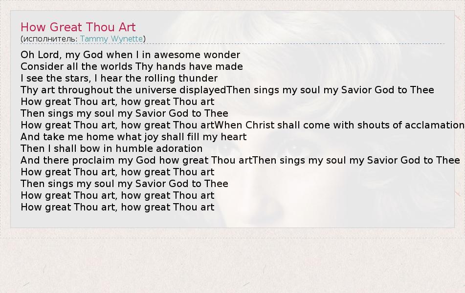 А как ты думаешь, о чем песня "How Great Thou Art" ?