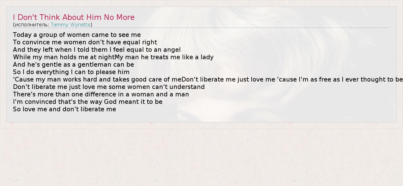 ГлавнаяИсполнителиTammy WynetteI Don't Think About Him No More