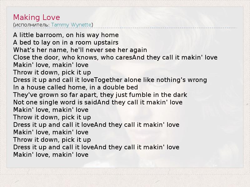 А как ты думаешь, о чем песня "Making Love" ?