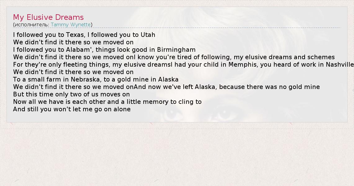 А как ты думаешь, о чем песня "My Elusive Dreams" ?