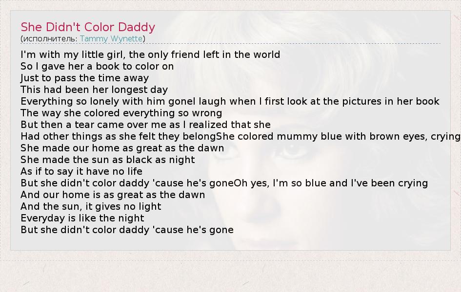А как ты думаешь, о чем песня "She Didn't Color Daddy" ?
