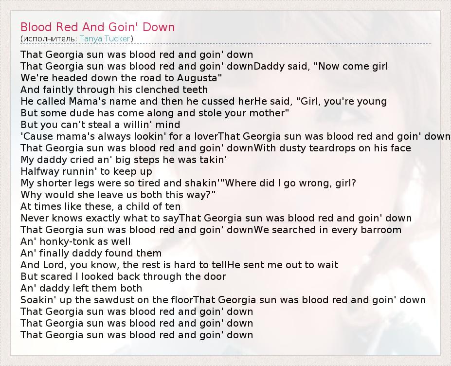 ГлавнаяИсполнителиTanya TuckerBlood Red And Goin' Down