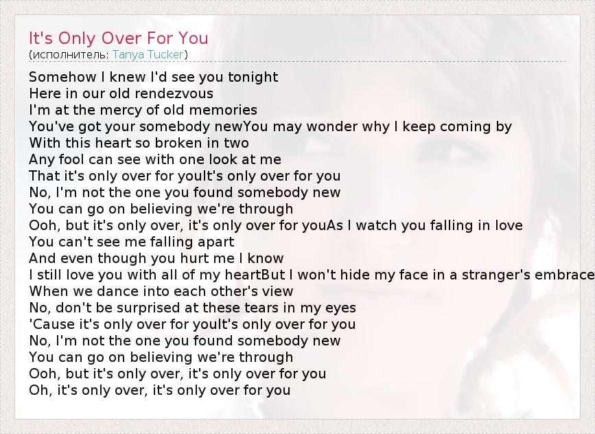 А как ты думаешь, о чем песня "It's Only Over For You" ?