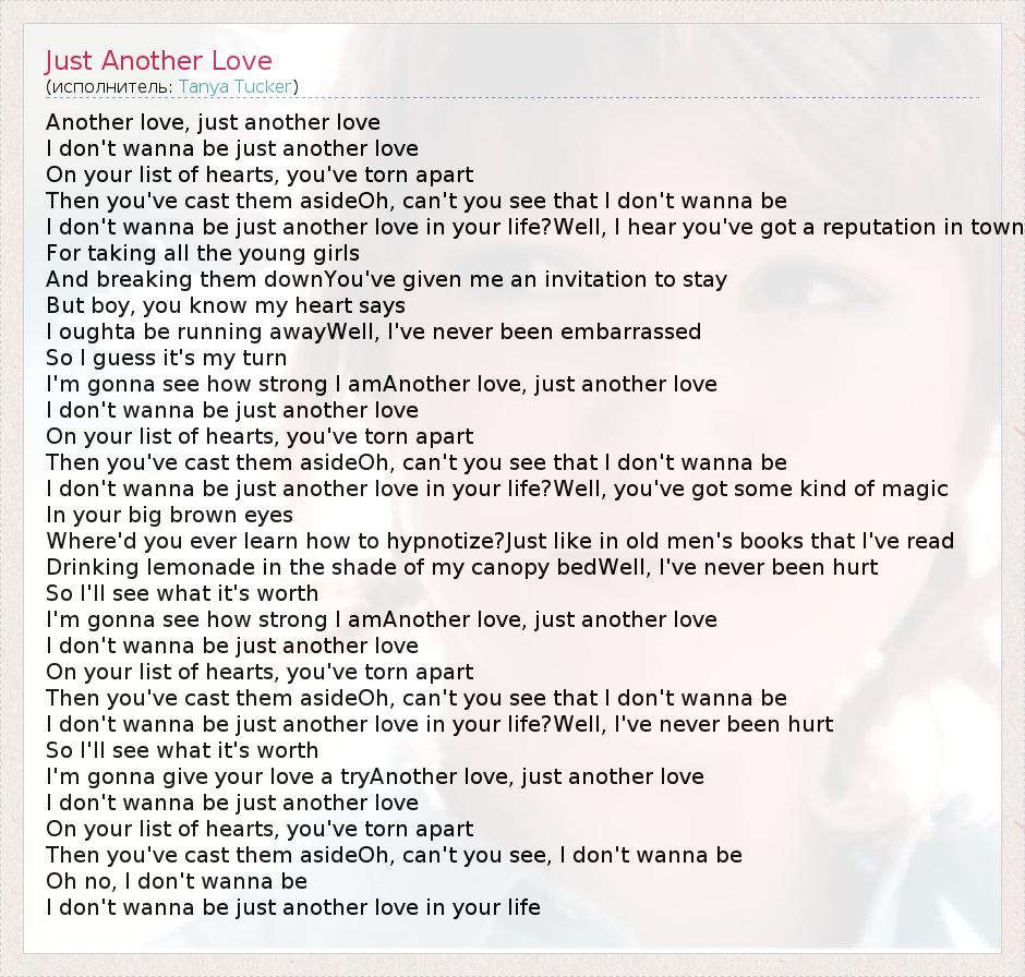 А как ты думаешь, о чем песня "Just Another Love" ?