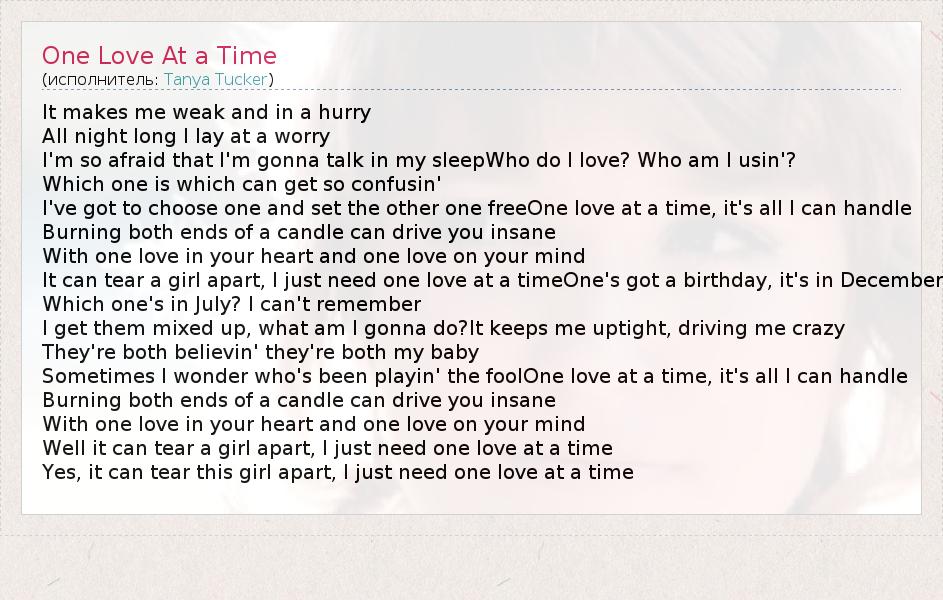 А как ты думаешь, о чем песня "One Love At a Time" ?