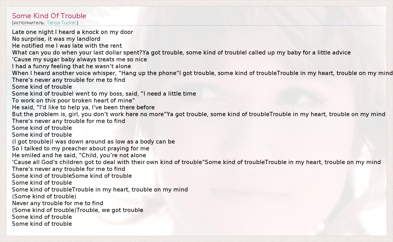 А как ты думаешь, о чем песня "Some Kind Of Trouble" ?