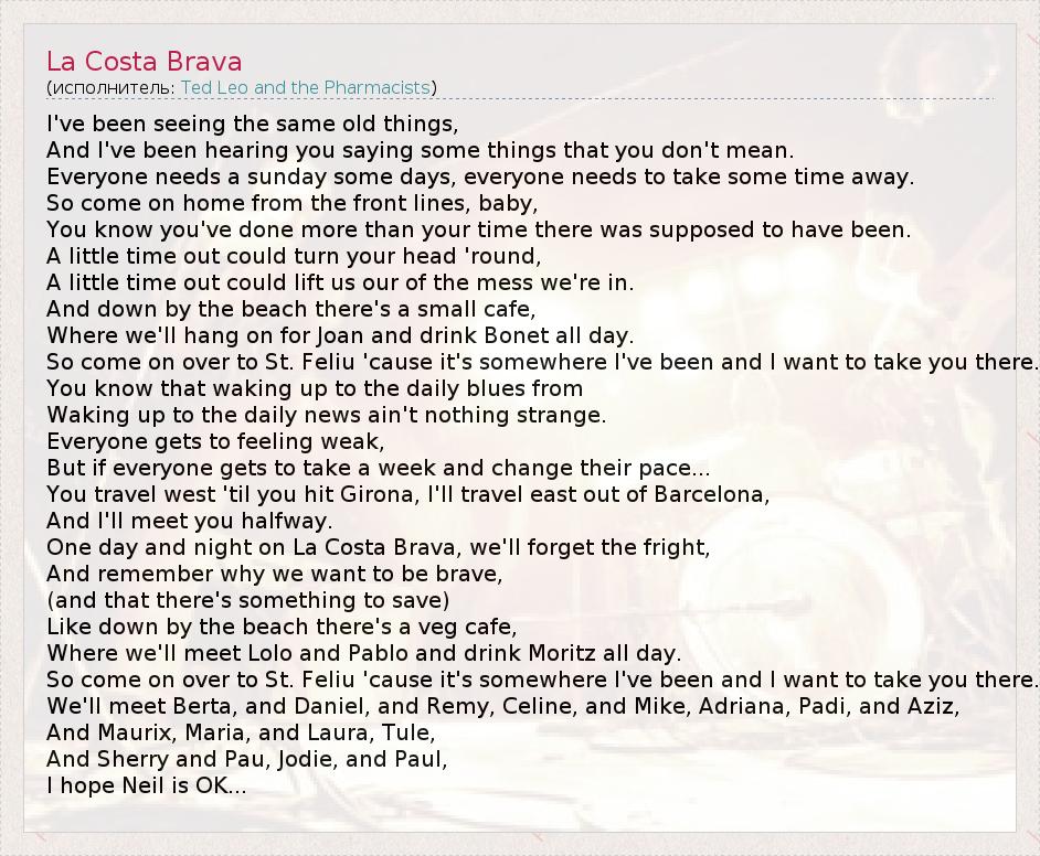 А как ты думаешь, о чем песня "La Costa Brava" ?