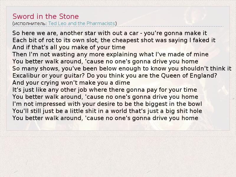 А как ты думаешь, о чем песня "Sword in the Stone" ?